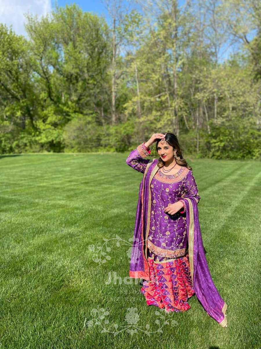 Striking colors and timeless elegance is our favorite game to play! Our client dazzles in our Fuschia tukri gharara, all set to make a statement!